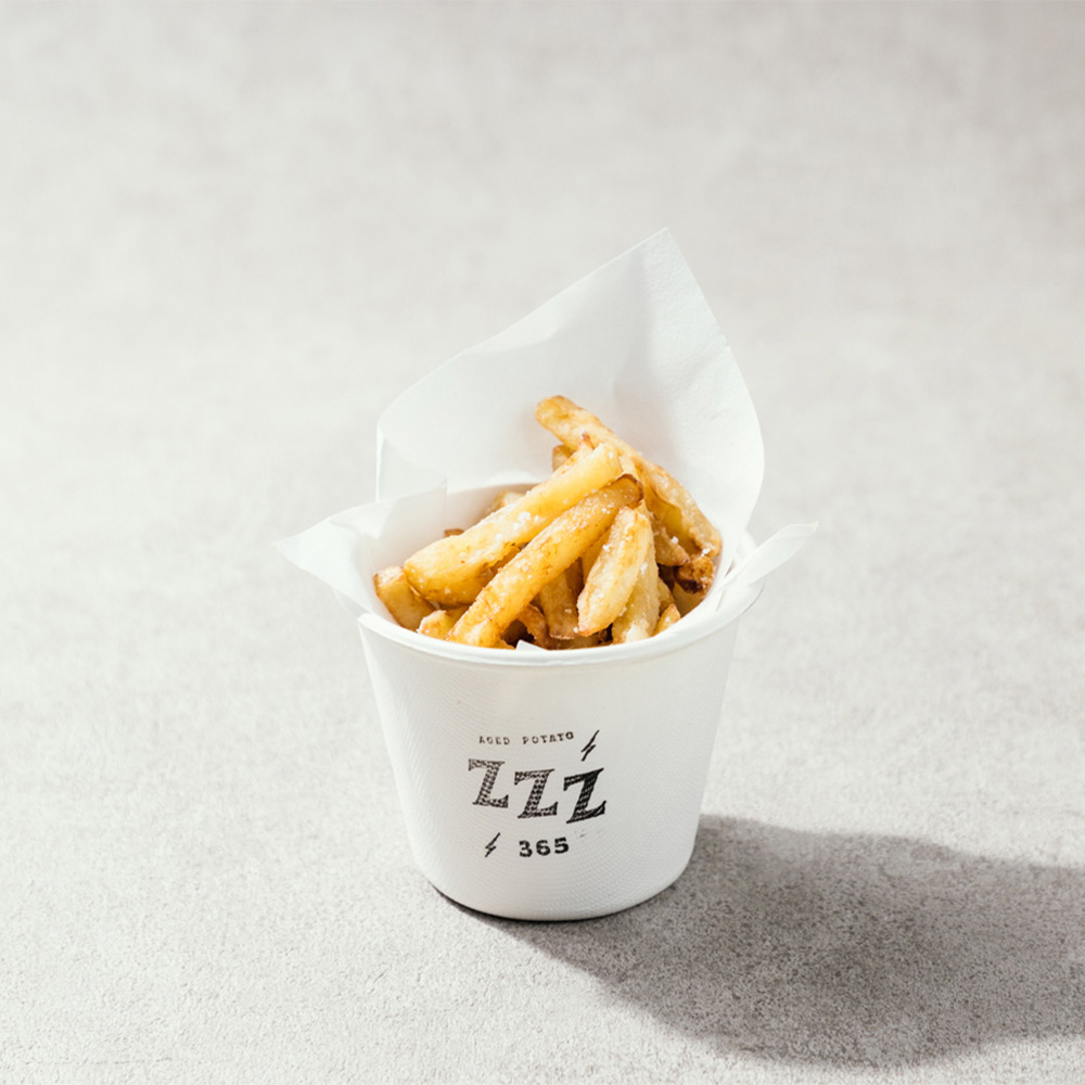zzz365のフライドポテトは、北海道・十勝の大地で育ち、1年以上かけて熟成された特別なジャガイモを使用しています。