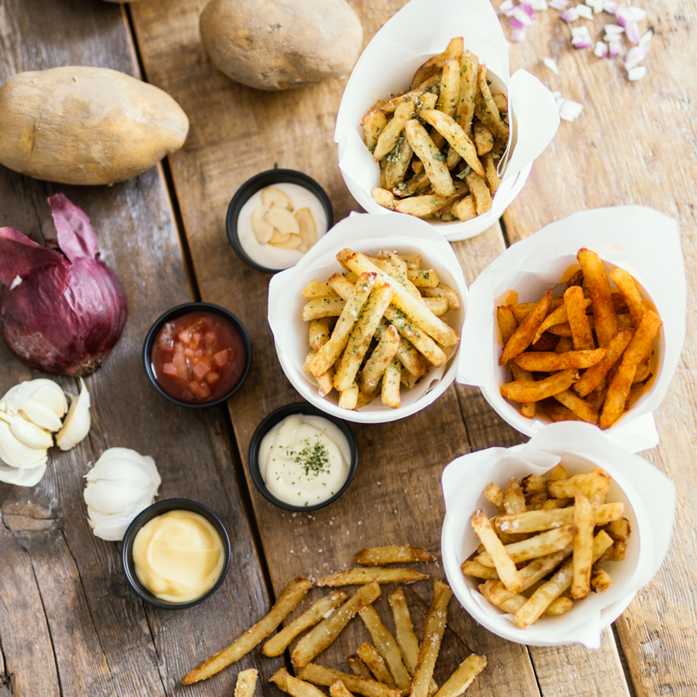 十勝の農家さんがつくる、365 日以上寝かせた特別なじゃがいもを使用したフライドポテトを作っています。